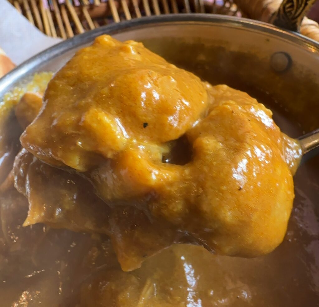 カレーには大きな具材がゴロゴロ入っており、ナンとの相性抜群!