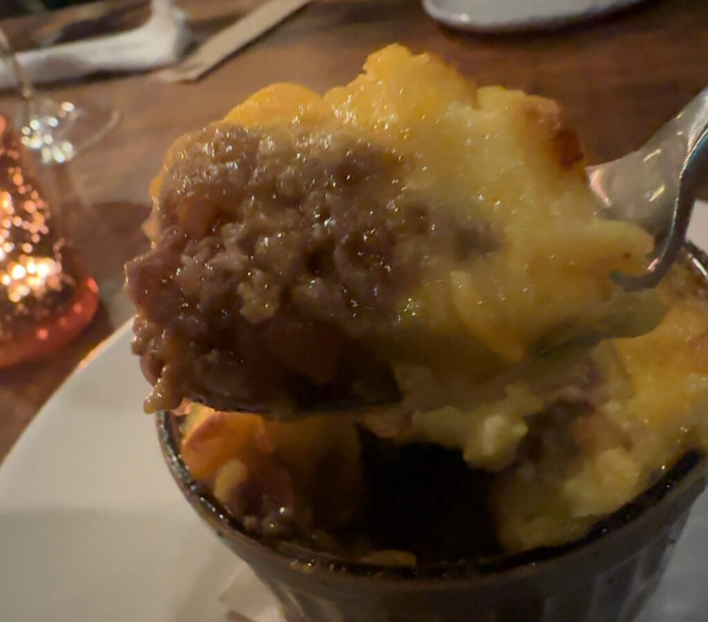 ふわふわのマッシュの下にはたっぷりラムのひき肉が入っています!