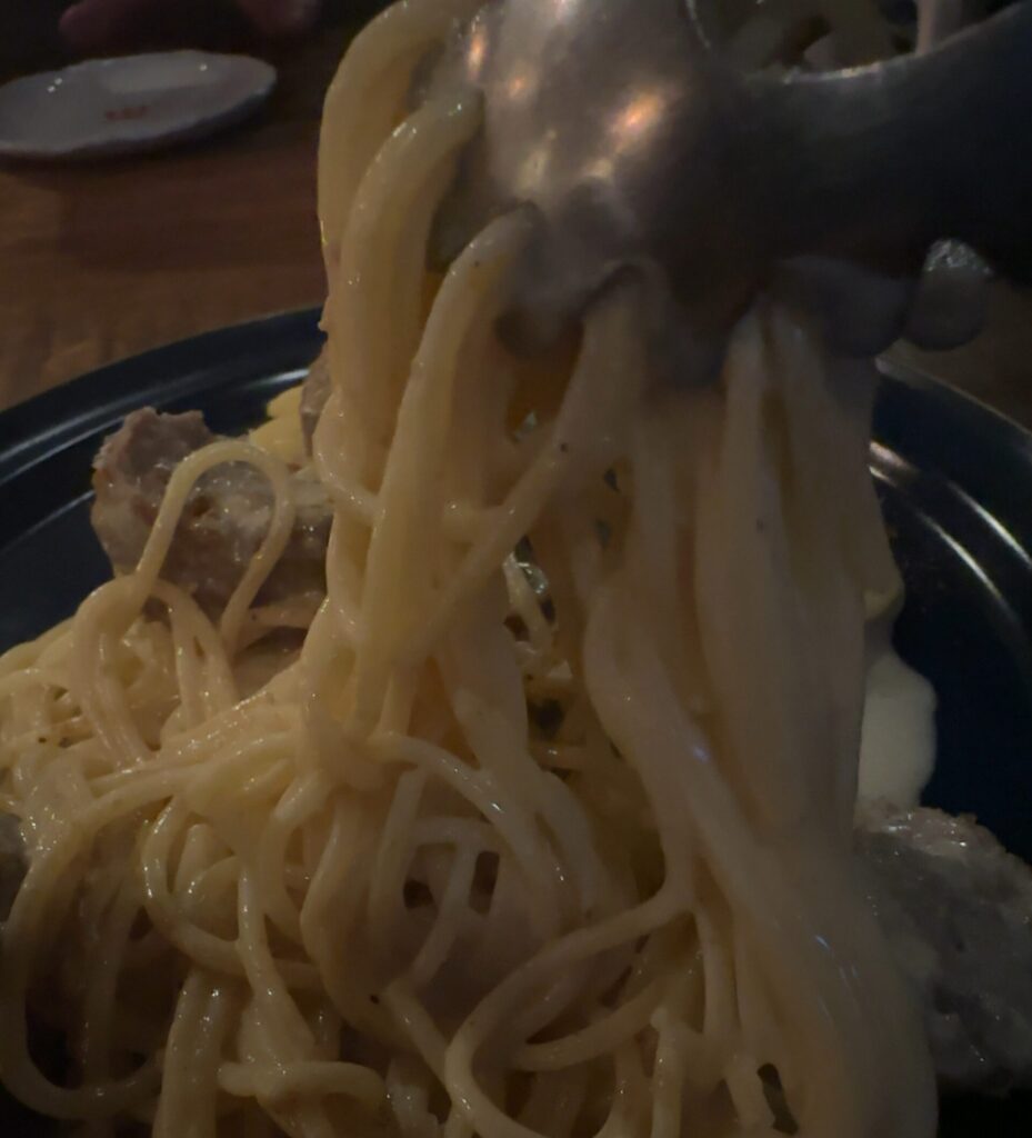 濃厚なソースがパスタによく絡み、美味しかったです!