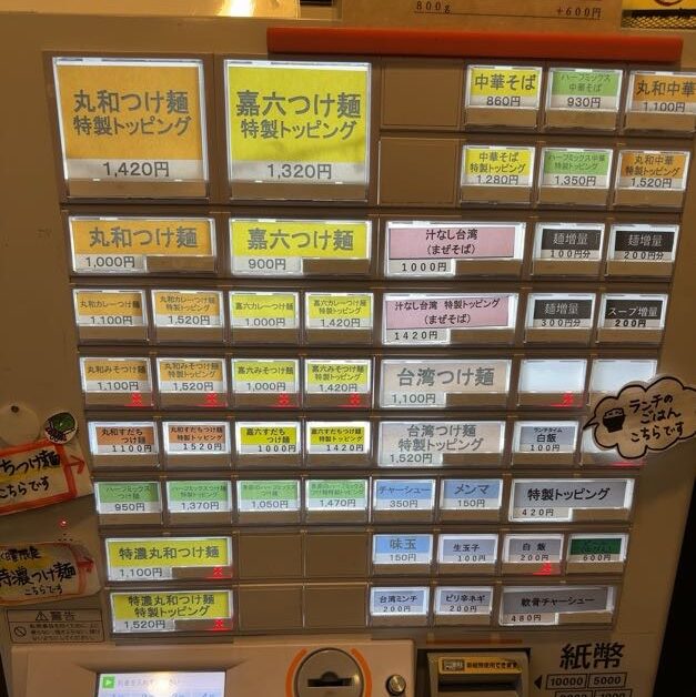 今回は丸和つけ麺 特製トッピング(1420円)ランチライス(100円)にしました!