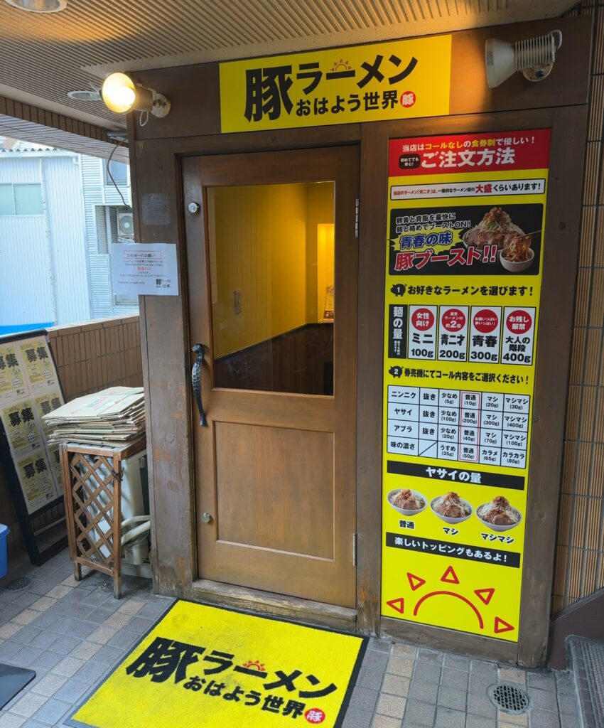今回紹介したお店は、「豚ラーメン おはよう世界」